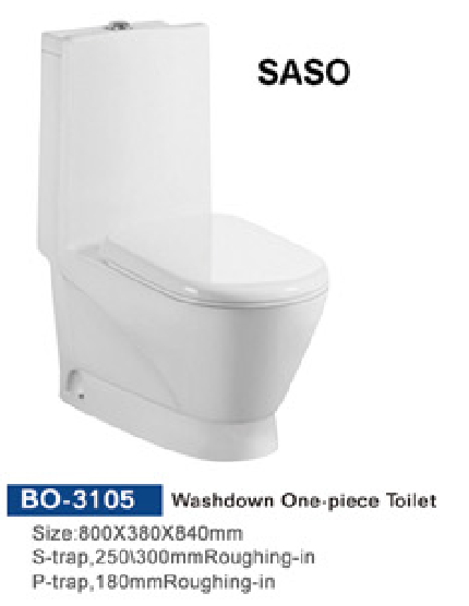Specifations: BO-3105        Washdown One-piece Toilet    "S-trap,200/250/300mm