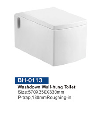 Specifations: Washdown wall-hung toilet    P-trap,180mm    570*350*330mm    WHITE