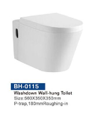 BH-0115        washdown wall-hung toilet     P-trap,180    560*350*350mm    WHITE