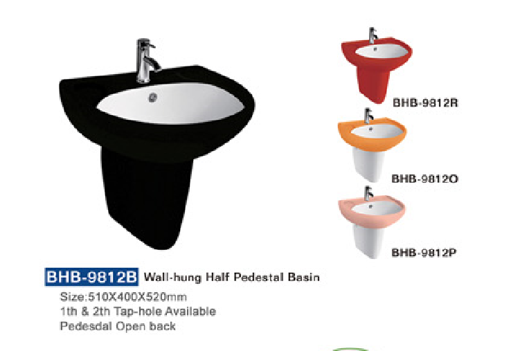Specifations: Wall-hung Half Pedestal Basin(Pedestal Open Back)