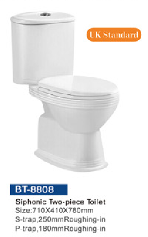 Specifations: Siphonic Two-piece Toilet    S-trap,250 mm               p-trap,180mm    710*410*780mm    WHITE