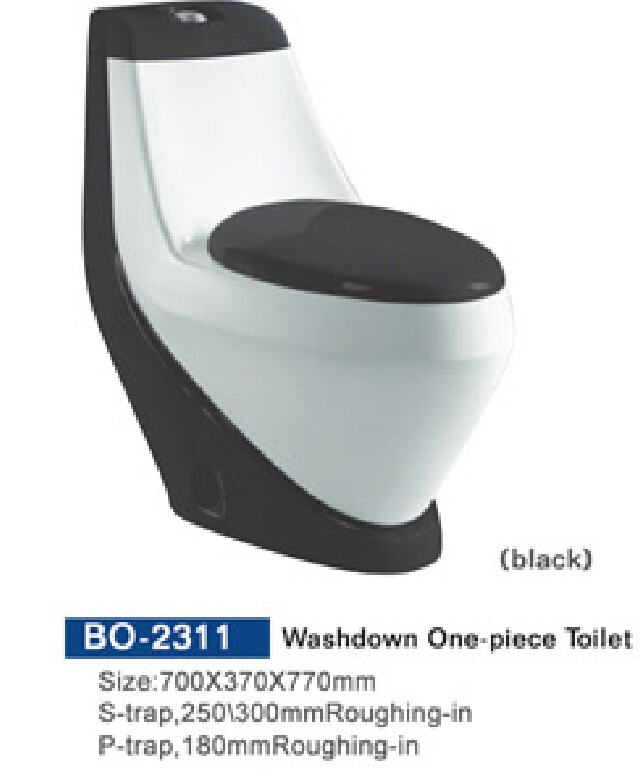 Washdown One-piece Toilet    S-trap:250/300 mm                           P-trap:180mm     700*370*770    Black