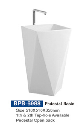BPB-6988 Pedestal basin  (1th &2th tap-hole availablepedestal open back)        510*510*850