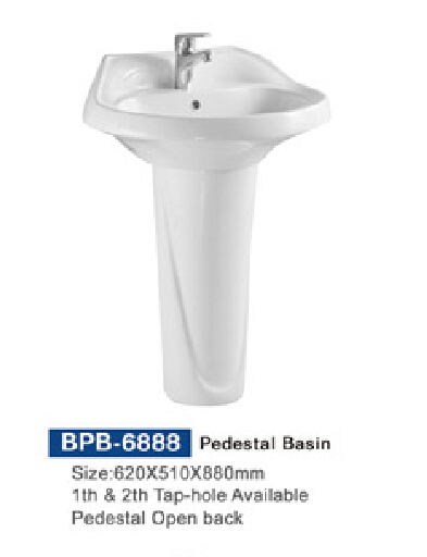 BPB-6888        Pedestal basin  (1th &2th tap-hole availablepedestal open back)        620*510*880