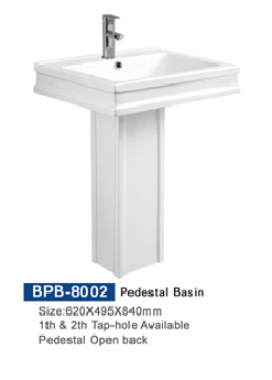 BPB-8002        Pedestal basin  (1th &2tap-hole availablepedestal open back)        620*495*840