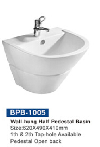BPB-1005 Wall-hung Half Pedestal basin (1th &2th tap-hole available pedestal open back) 620*490*410