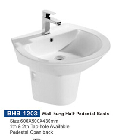 BHB-1203        Wall-hung Half Pedestal Basin(1th &2th tap-hole available pedestal open back)        600*500*430