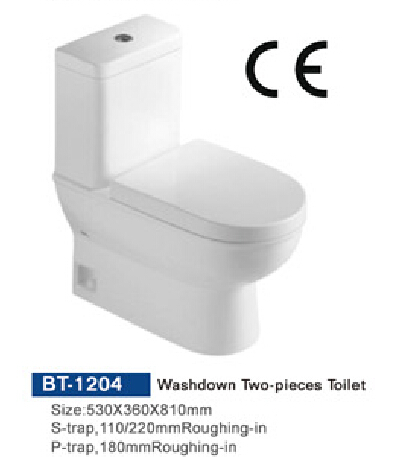 Specifations: BT-1204        Washdown two-pieces toilet    "S-trap,110.220mm