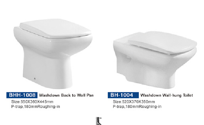 BH-1004 Washdown Wall-hung Toilet P-trap,180mm 520*370*350