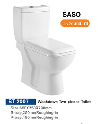 BT-2007 Washdown two-pieces toilet S-trap,250mm P-trap,180mm 660*350*790