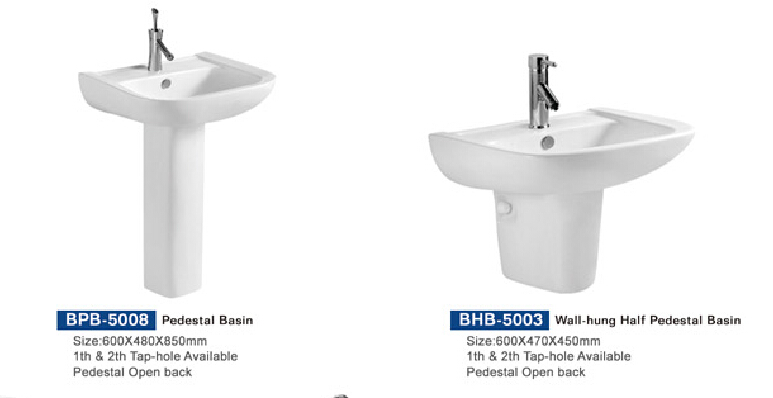 BPB-5008 Pedestal Basin(1th &2th tap-hole available pedestal open back) 600*480*850