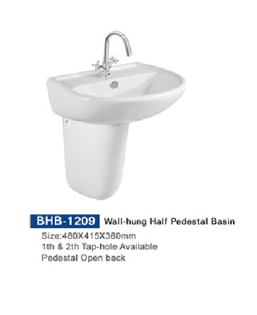 BHB-1209 Wall-hung Half pedestal Bsain(1th &2th tap-hole available pedestal open back) 480*415*360