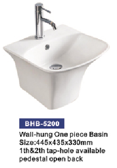 wall-hung one piece basin(1th&2th tap-hole available pedestal open back)