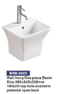 wall-hung one piece basin(1th&2th tap-hole available pedestal open back)