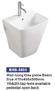 wall-hung one piece basin(1th&2th tap-hole available pedestal open back)
