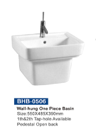 wall-hung one piece basin(1th&2th tap-hole available pedestal open back)