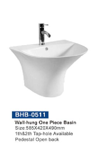 wall-hung one piece basin(1th&2th tap-hole available pedestal open back)