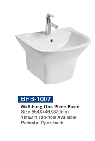 wall-hung one piece basin(1th&2th tap-hole available pedestal open back)