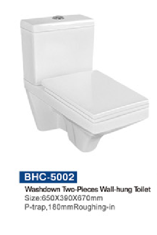 Specifations: Washdown Two-pieces wall-hung toilet     P-trap,180mm    650*390*670mm    WHITE