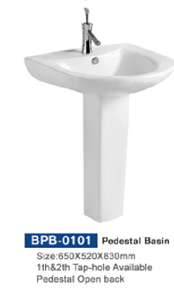 BPB-0101        Pedestal basin                           (1th &2th tap-hole available pedestal open back)        650*520*830    WHITE
