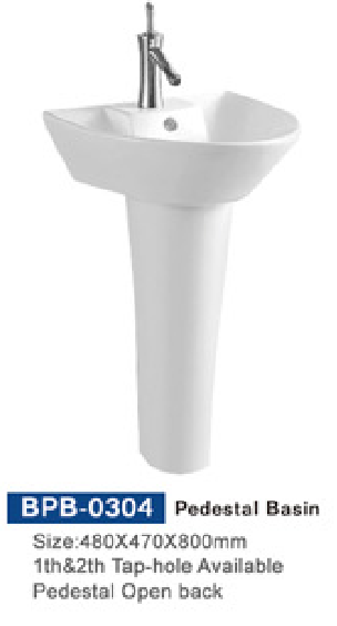 BPB-0304        Pedestal basin               (1th&2th tap-hole available pedestal open back)        480*470*800mm    WHITE