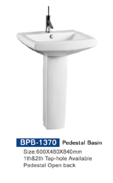 BPB-1370        Pedestal basin                           (1th &3th tap-hole available pedestal open back)        600*480*840    WHITE