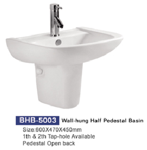 Wall-hung Half Pedestal Basin(1th &2th tap-hole available pedestal open back)